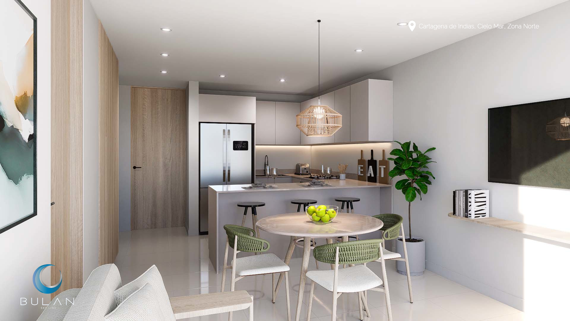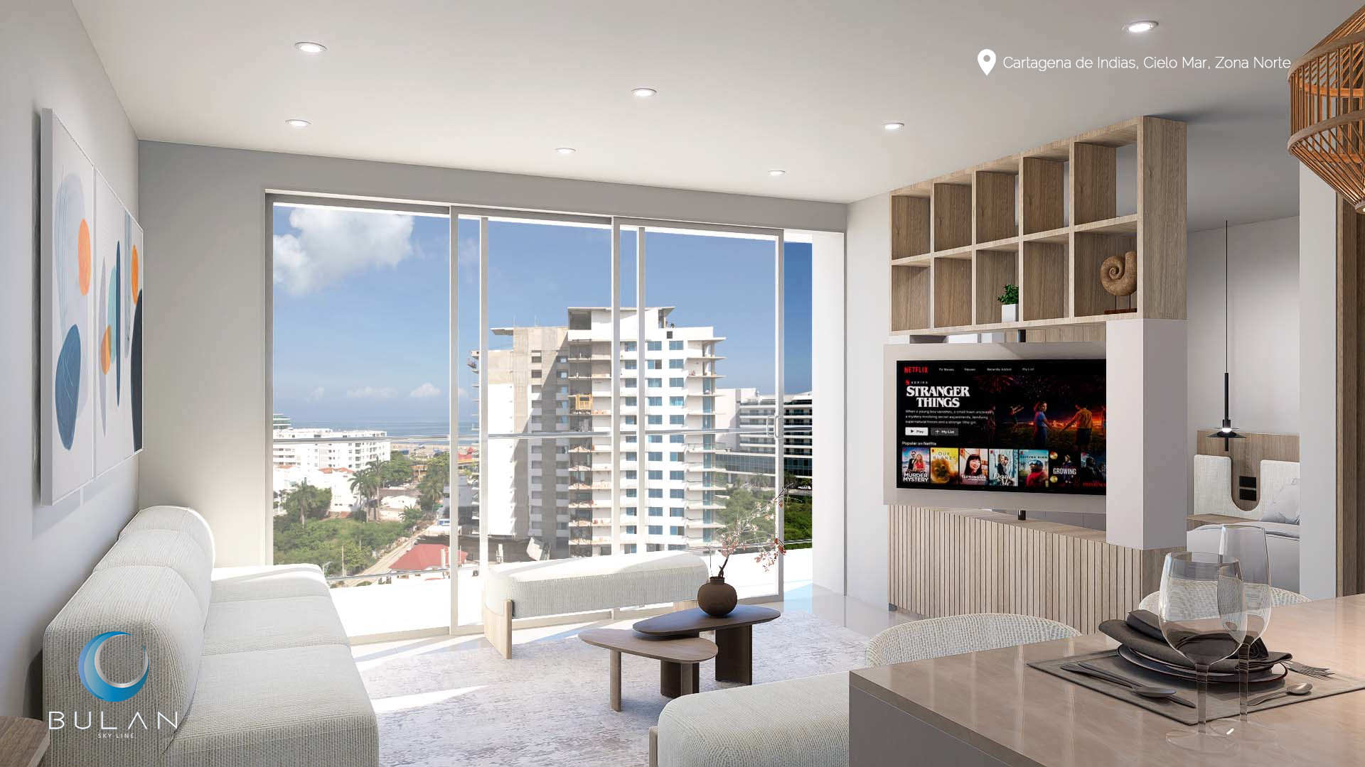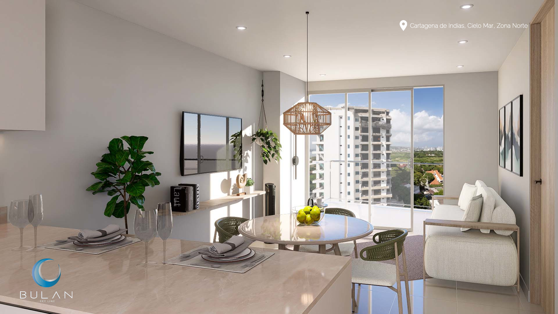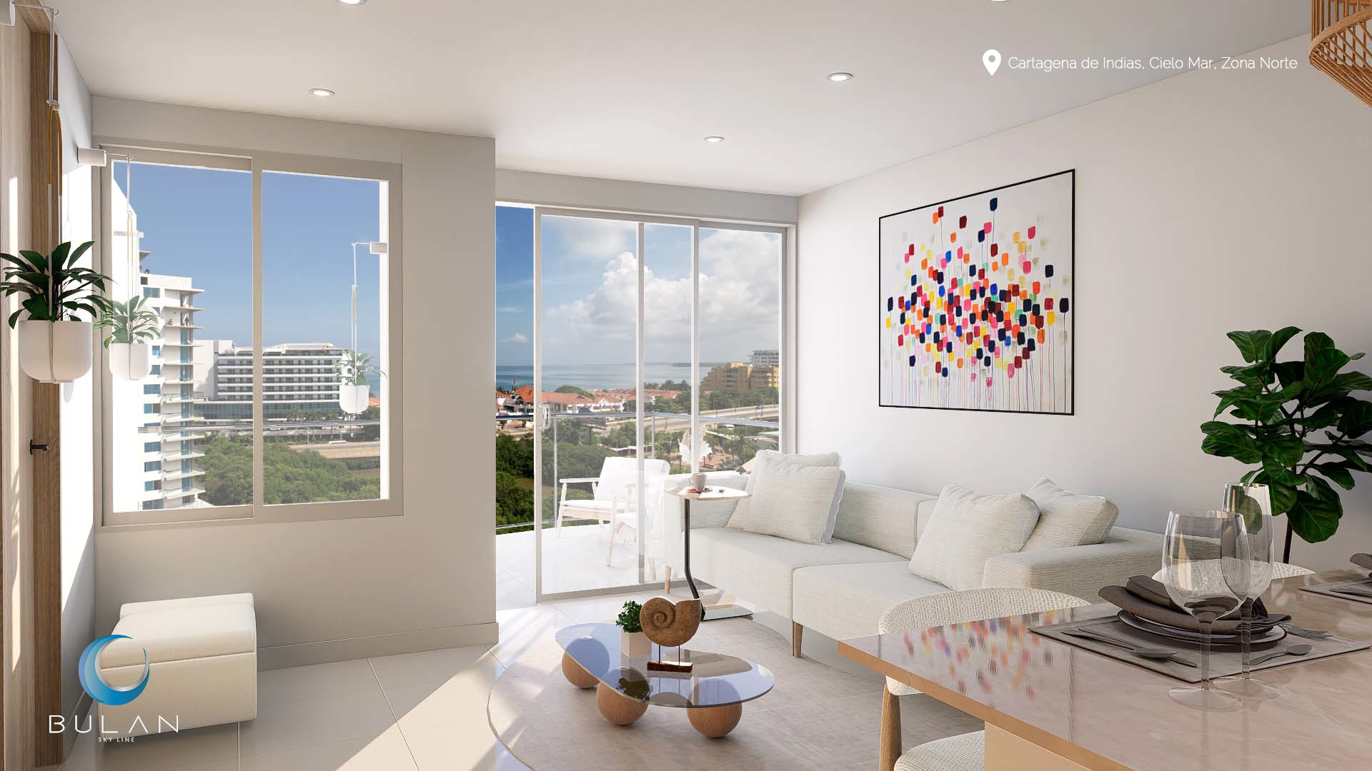 Las imágenes contenidas en este impreso constituyen una unidad jurídica que complementan y actualizan la información presentada; en consecuencia, pueden presentar variaciones, pues contienen elementos de apreciación estética que son interpretación del artífice de la pieza publicitaria. Los materiales, colores, equipamiento y mobiliario que se exhibe es ilustrativo y no comprometen a la constructora. Las especificaciones y dimensiones definitivas serán las aprobadas por la curaduría urbana y son susceptibles de modificación por las autoridades administrativas de control. Las áreas mencionadas corresponden al área total construida. El área privada resulta de la exclusión de elementos como muros estructurales, columnas, ductos y muros de fachada, la cual se informa en la lista de precios.