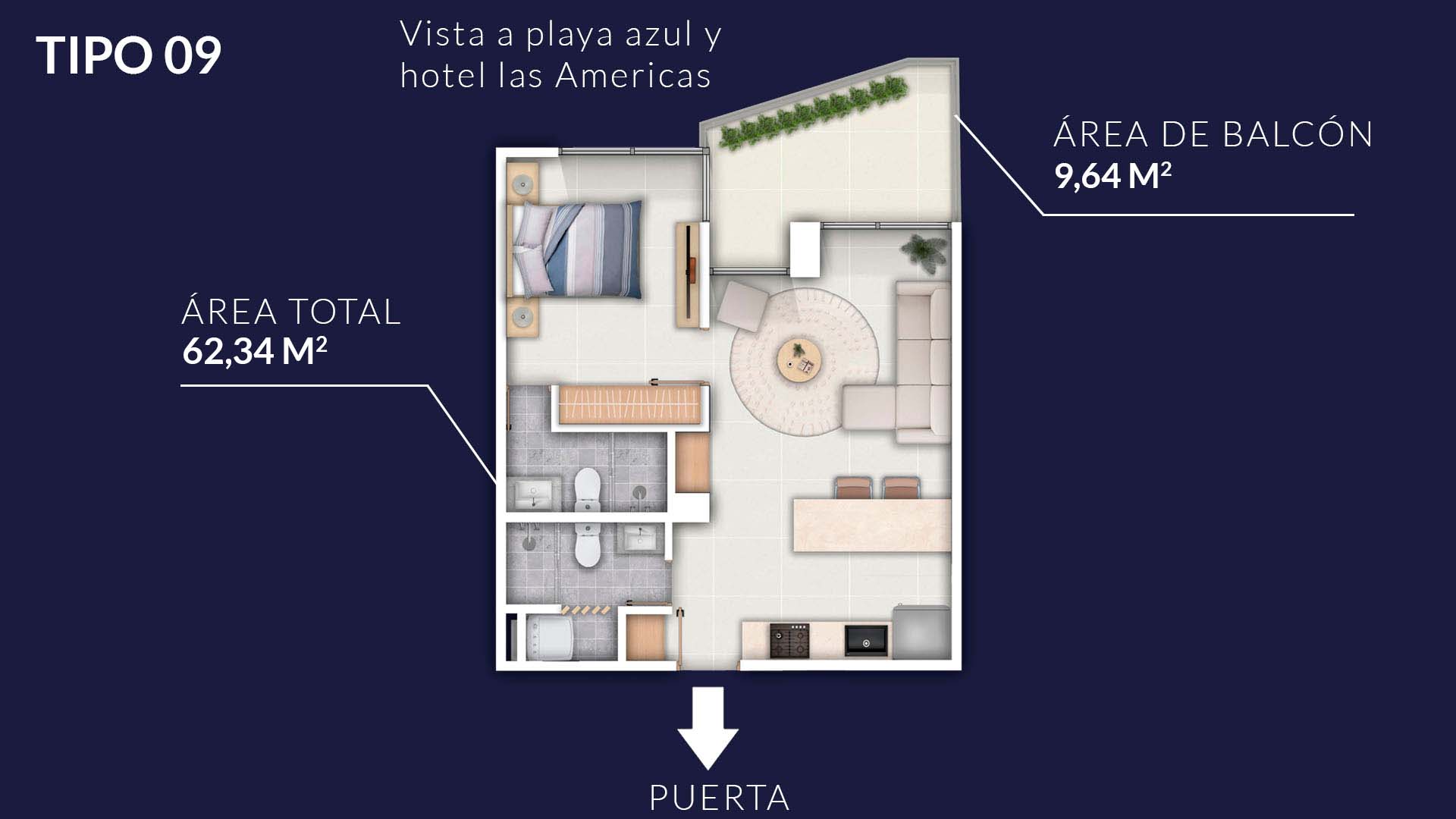 Compacto y eficiente, diseñado para maximizar cada metro cuadrado. Ideal para quienes buscan una inversión inteligente con vistas al mar.